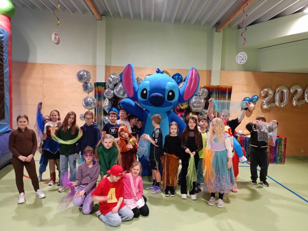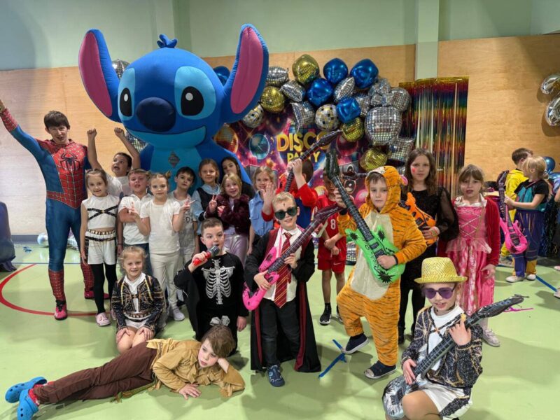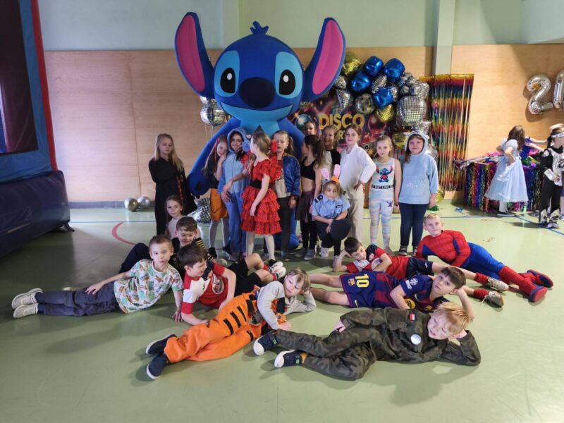 Na dzieci czekał także zamek dmuchany, a prawdziwym hitem okazały się bajkowe postacie – Spiderman królował na parkiecie, a dodatkową niespodzianką była wizyta Stitcha