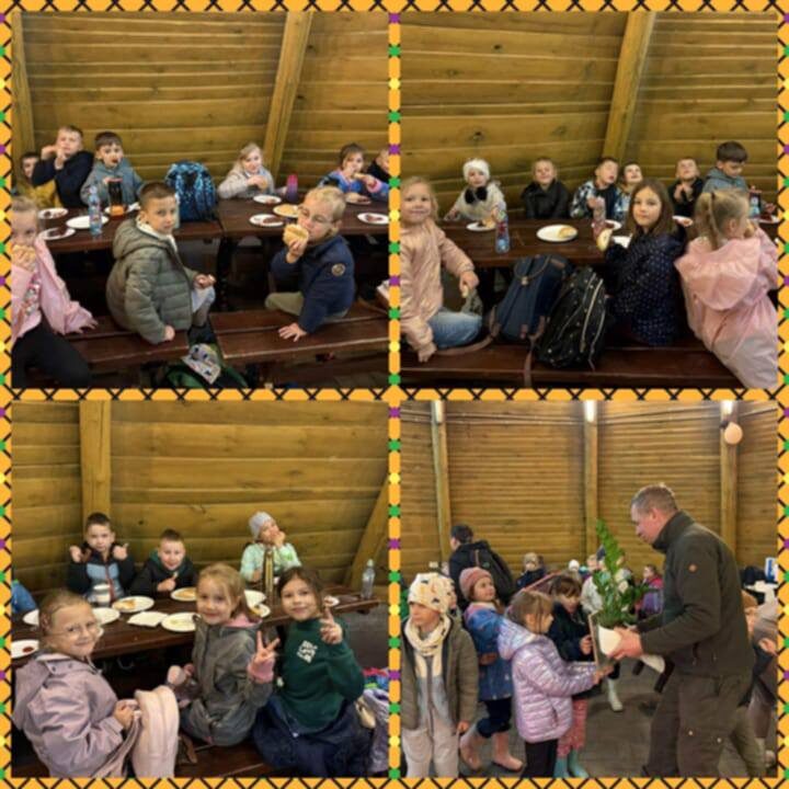 Po 3 kilometrowym spacerze z panem leśniczym udaliśmy się do wigwamu gdzie nasi kochani rodzice przygotowali dla nas pyszną kiełbasę z ogniska oraz inne smakołyki. To był piękny dzień