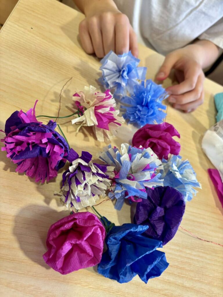 Podczas zajęć uczniowie z zaangażowaniem tworzą kolorowe kwiaty z bibuły oraz piękne palmy wielkanocne. To nie tylko świetna zabawa, ale też okazja do kultywowania tradycji i rozwijania kreatywności.