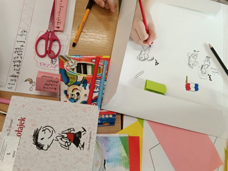 Klasa 4a kreatywnie podsumowała cykl pracy z lekturą „Mikołajek”, wykonując lapbooki