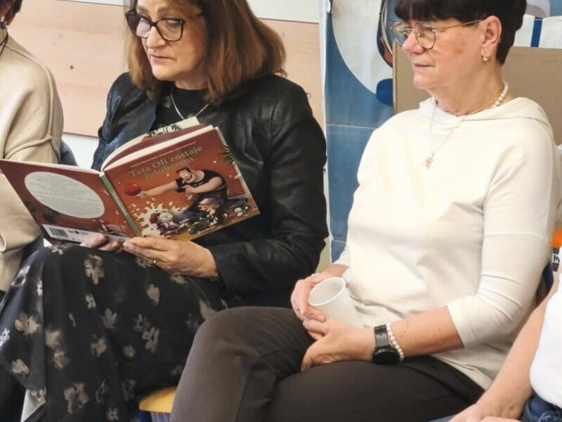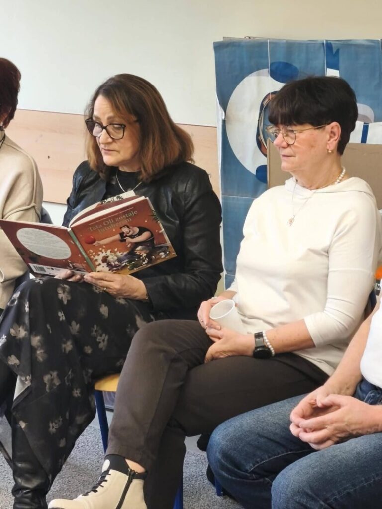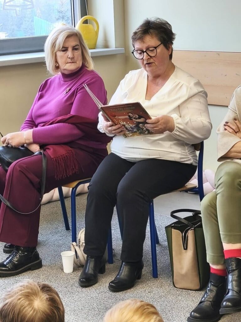 Po części rozmów przyszedł czas na wspólne czytanie. Dziadkowie czytali dzieciom krótkie opowiadania, a następnie wszyscy mogli cieszyć się chwilą wspólnego bycia razem – rozmowami przy herbacie i kawie, przytulasami oraz dodatkowymi pytaniami, na które wcześniej zabrakło odwagi lub sił.