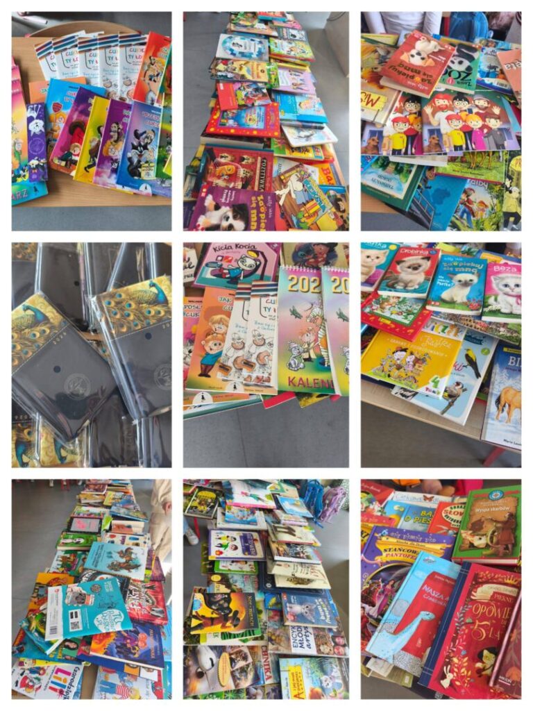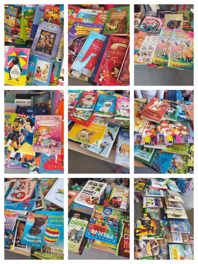 Z ogromną radością informujemy, że w zbiórce wzięło udział bardzo wielu uczniów – zarówno młodzież, jak i dzieci ze szkoły podstawowej oraz zerówki. Skala zaangażowania przerosła nasze oczekiwania – książek było tak dużo, że nie jesteśmy nawet w stanie ich dokładnie policzyć!