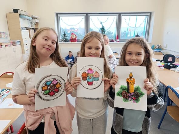 W czasie poniedziałkowych zajęć w świetlicy uczniowie rozmawiali o tym, jak według polskiej tradycji wygląda wigilijny stół. Przypomnieli sobie wigilijne potrawy, tworząc wigilijne menu.