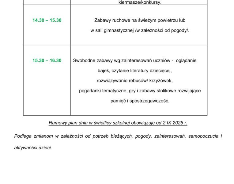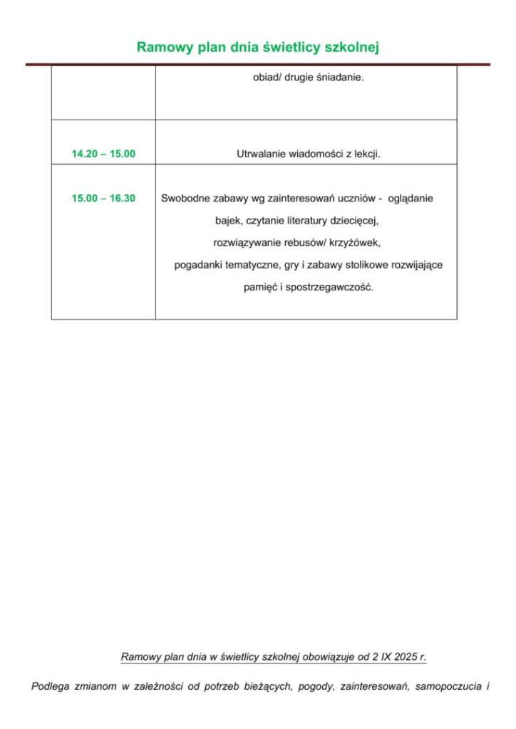 UCZNIOWIE PRZYJĘCI DO ŚWIETLICY SZKOLNEJ W ROKU SZKOLNYM 2025/2026 NA PODSATWIE TERMIONOWO ZŁOŻONYCH WNIOSKÓW :